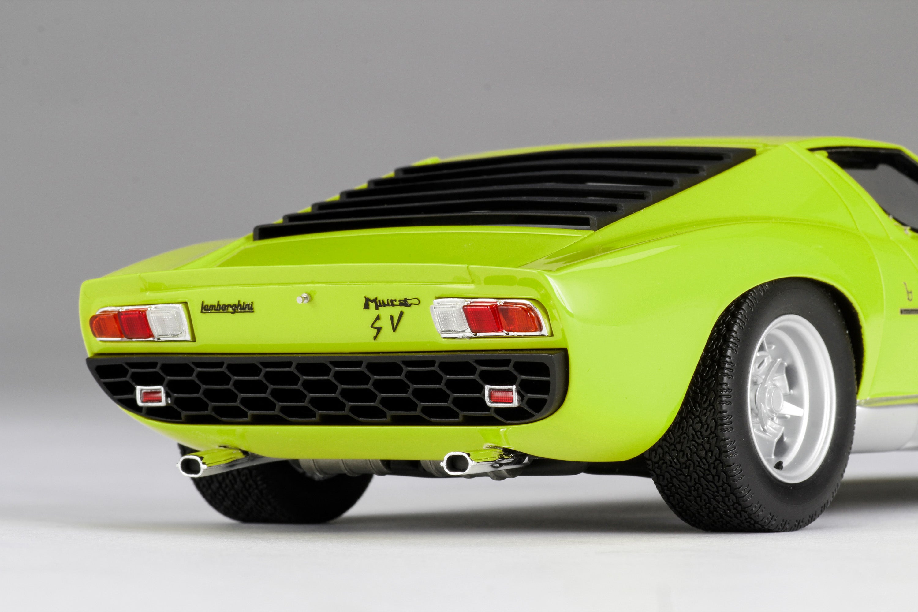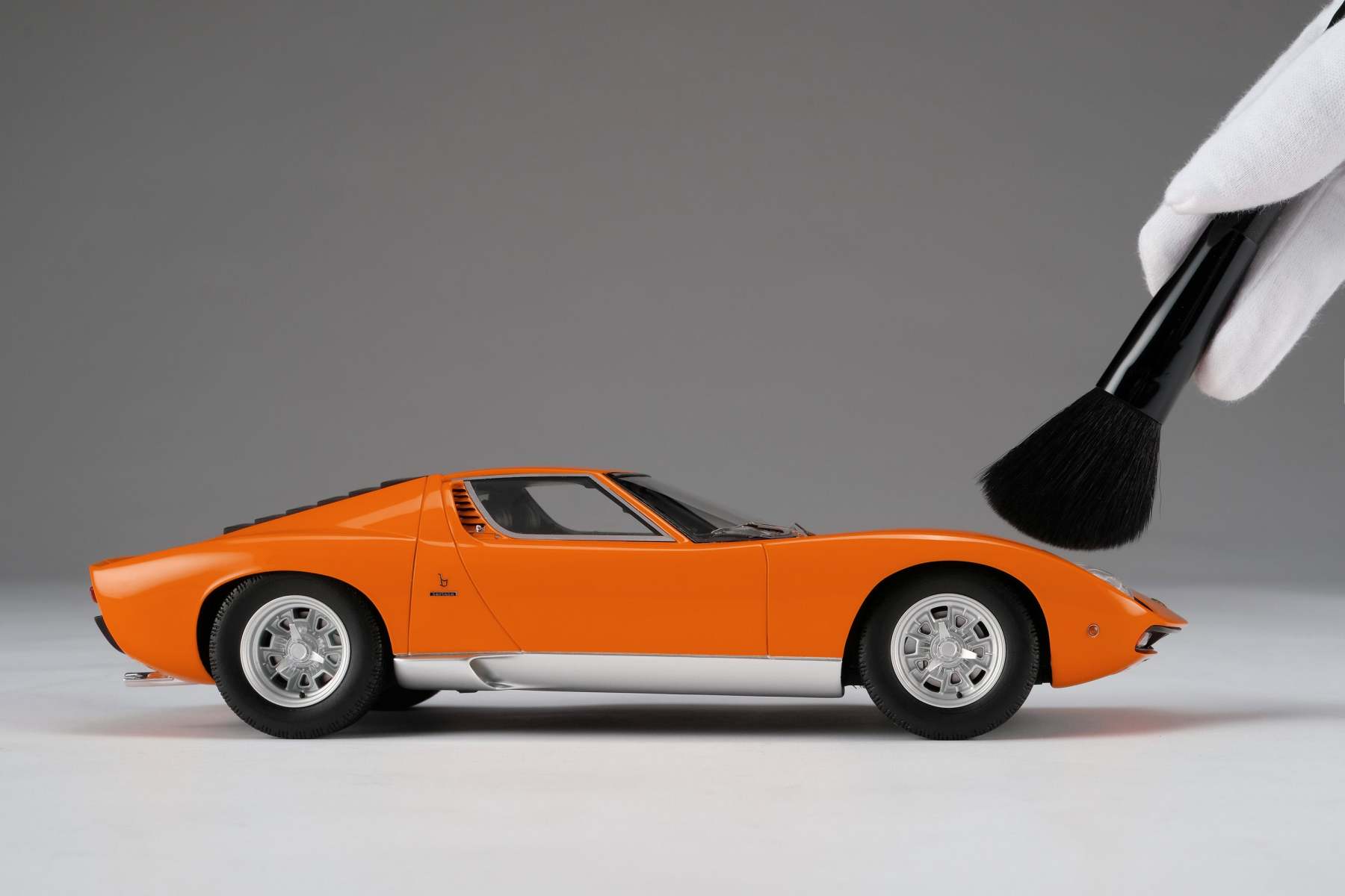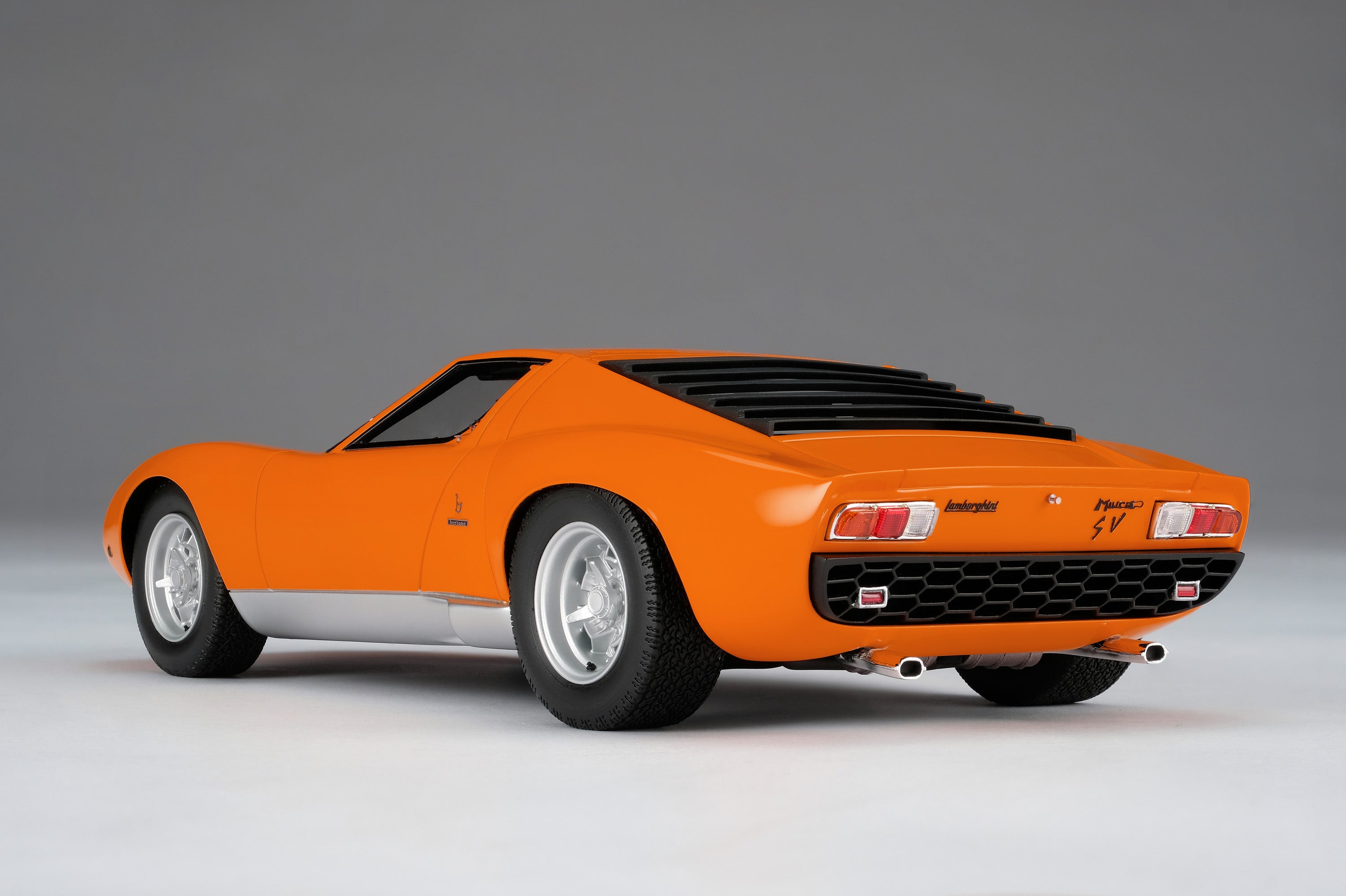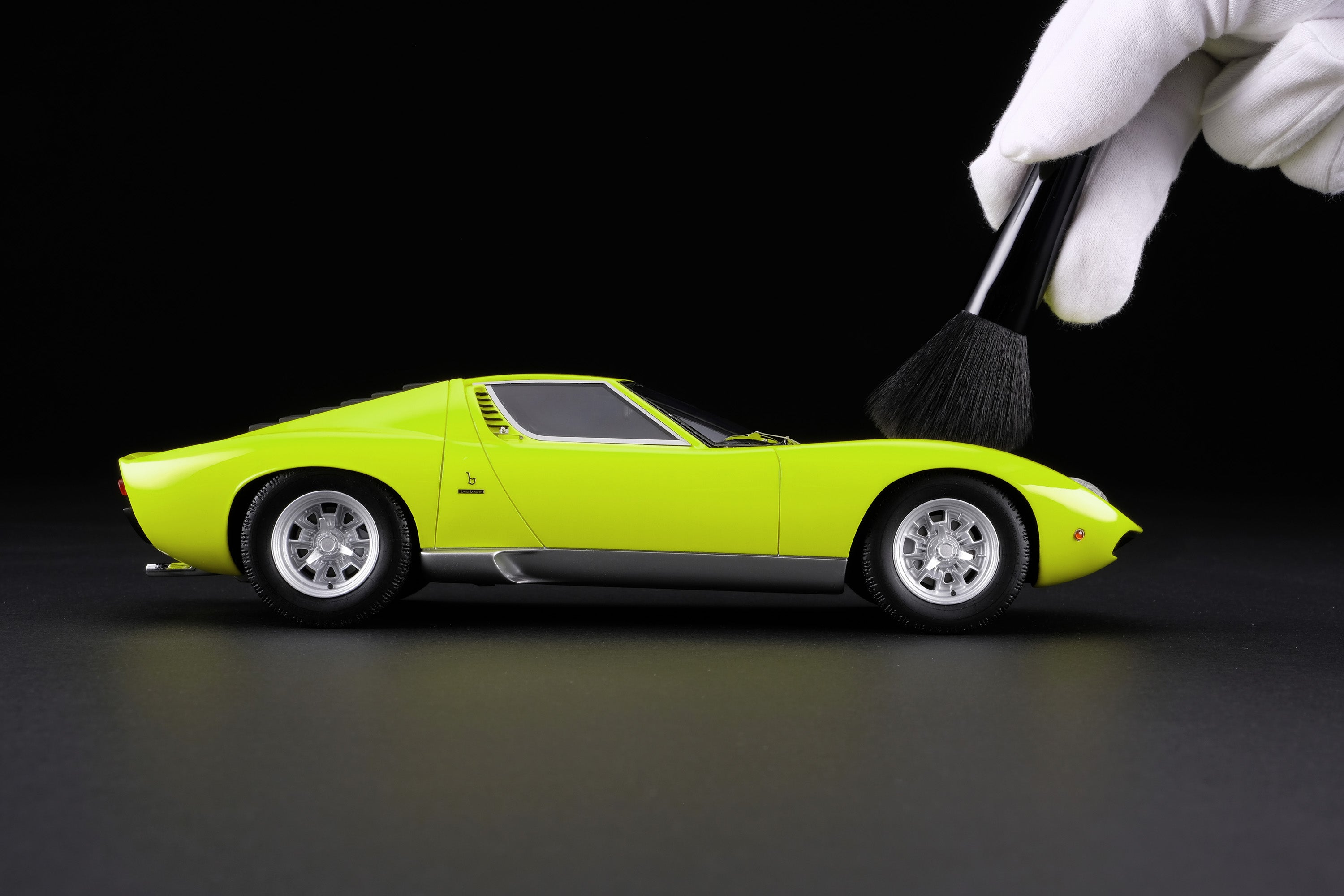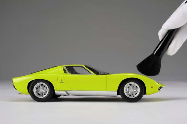 These perfect 1:18 scale models of the Lamborghini Miura P400 SV, available in Giallo, Verde Miura and Arancio Miura exterior paint scheme, have been handcrafted and finished in our workshops with the co-operation and assistance of Lamborghini regarding original finishes, materials, archive imagery and drawings. The use of supremely accurate digital scanning of the original car has allowed us to perfectly recreate every detail at scale. Furthermore, it has undergone detailed scrutiny by both engineering and design teams to ensure complete accuracy of representation. Every Amalgam 1:18 scale model is supplied in a luxury black presentation box and mounted on a carbon fibre or leather base protected by a clear acrylic dust cover. The model title, original branding and edition number are displayed on polished stainless-steel plaques mounted at the front end of the base.