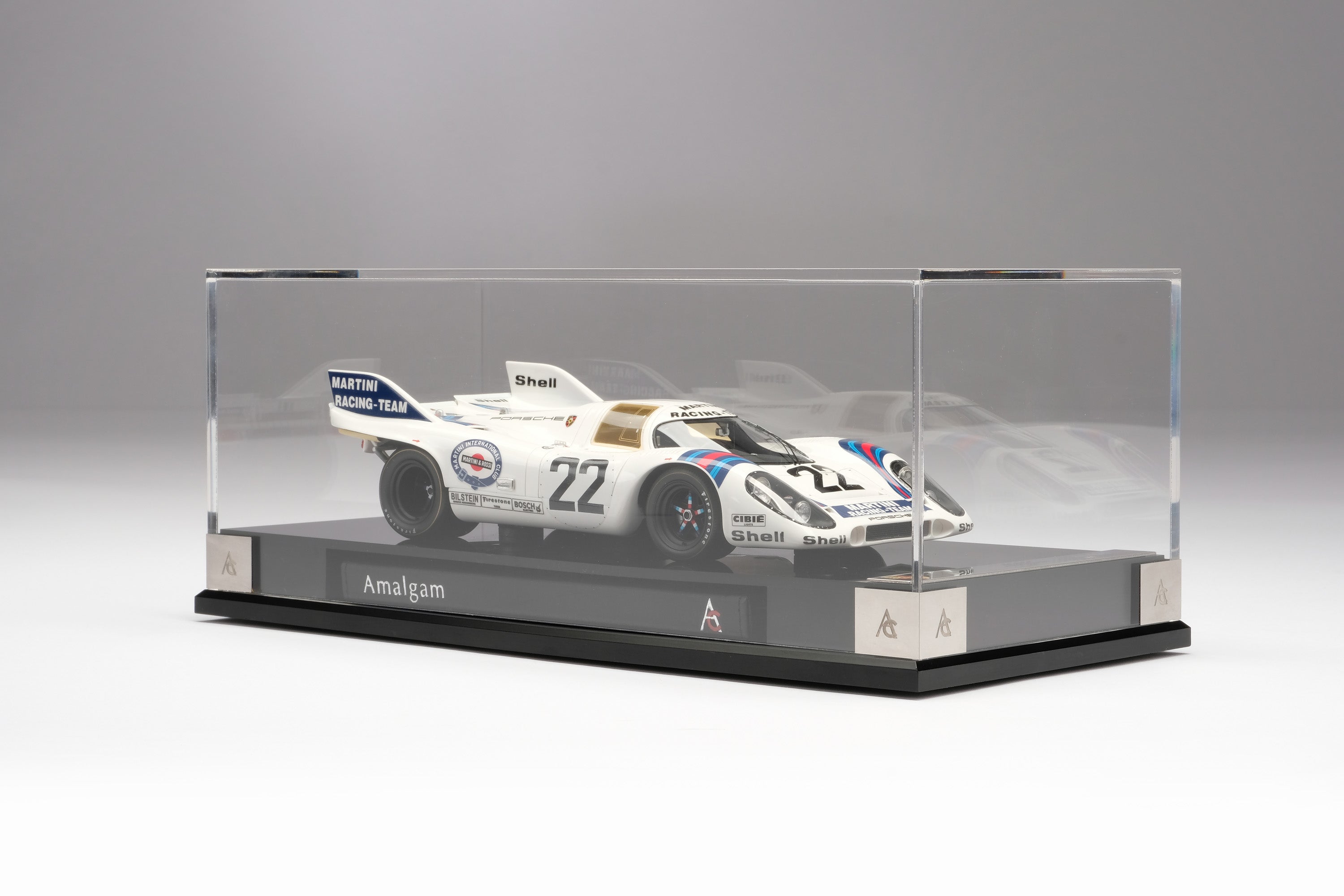 This fine 1:18 scale model of the Porsche 917 KH is based on the #22 car driven to victory by Dutch driver Gijs van Lennep and Austrian racer Helmut Marko at the 24 Hours of Le Mans in 1971. With the ban for over 3.0 litre engine displacements imminent, the race turned into quite the swansong; a long, fast track and extended good weather produced the fastest race in the event's history to date. There were not many accidents this year, but many cars were delayed or forced to retire due to mechanical problems so only twelve cars were classified as finishers. The Team Martini Porsche at the front of these finished two laps ahead of its rival John Wyer Porsche and an incredible 29 laps (386km) ahead of the third place Ferrari. The two Porsches were the first cars to cover over 5000km at Le Mans, a record that would stand for 39 years, cementing the 917K’s dominance over this era of motorsport.