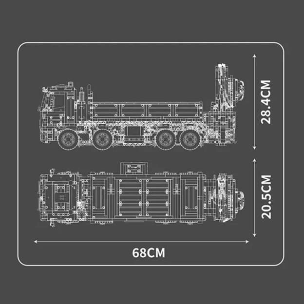 Spanning an impressive 68cm in length and composed of over 4000 pieces, this model offers an immersive building journey that captivates and challenges. From the detailed cabin to the powerful pneumatic accessories, every feature is crafted to provide a realistic and engaging assembly experience.